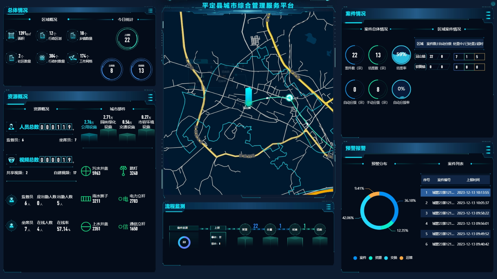 平台按照《数字化城市管理信息系统第8部分:立案、处置和结案》要求,建立了相对应的“一级监督、一级指挥、统一考评”的运行模式。建立了包括信息采集、案件建立、任务派遣、任务处理、处理反馈、核查结案和综合评价的7步闭环流程。并且,平台建设完善了业务指导、指挥协调、工地渣土、绩效考核、综合执法、可视化展示、行业管理分析、综合情况分析、专项治理分析、智能井盖、可视化调度以及视频监控等应用系统。通过平台的业务指导、可视化调度、视频监控等系统,基本实现智能数字城管一网全办理、城市治理云图一图全监管、可视化指挥调度一体全联动,切实提升了人民群众对城市管理的满意度。