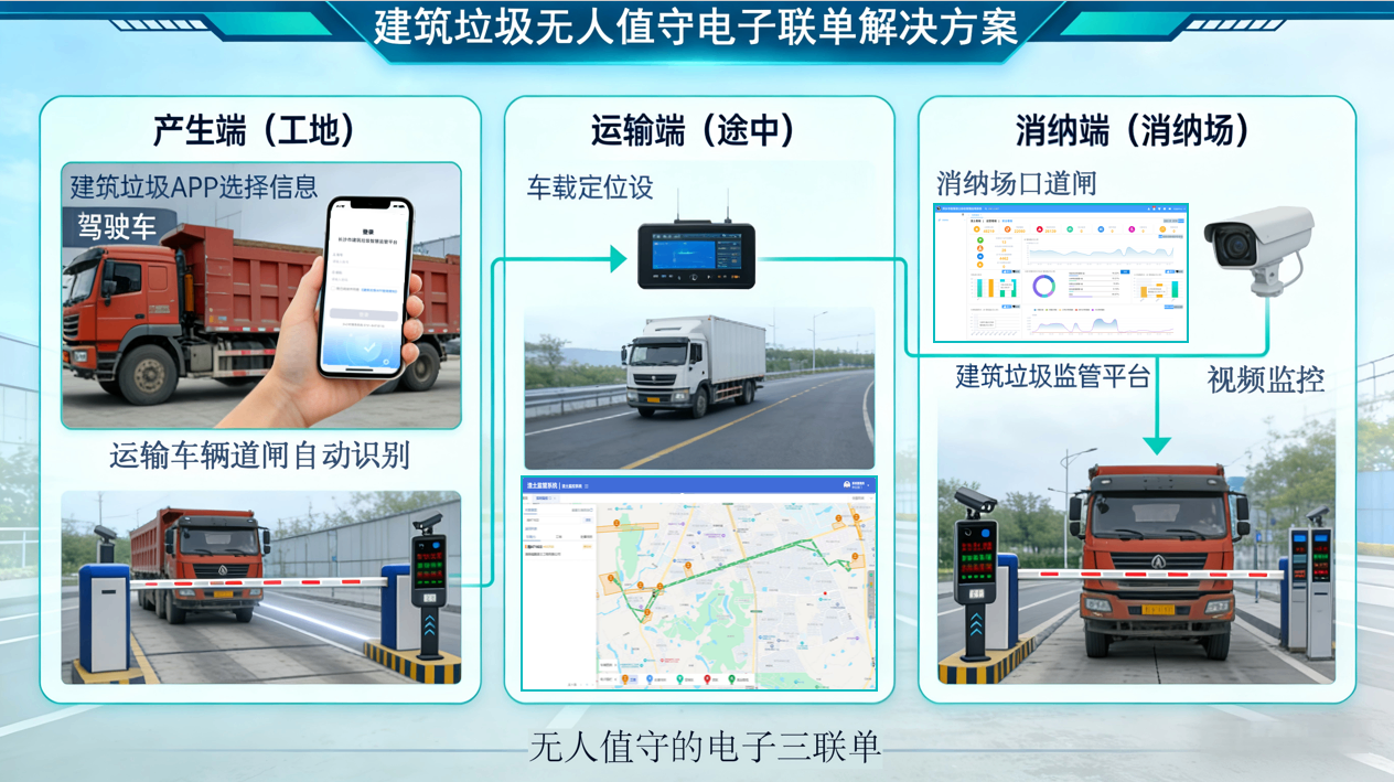 建筑垃圾智慧监管平台及无人值守电子联单模式,正以无声的数字化力量,守护着城市的脉络,让每一次运输都规范、可溯、高效,让城市治理迈向更加智能、精细的新阶段。