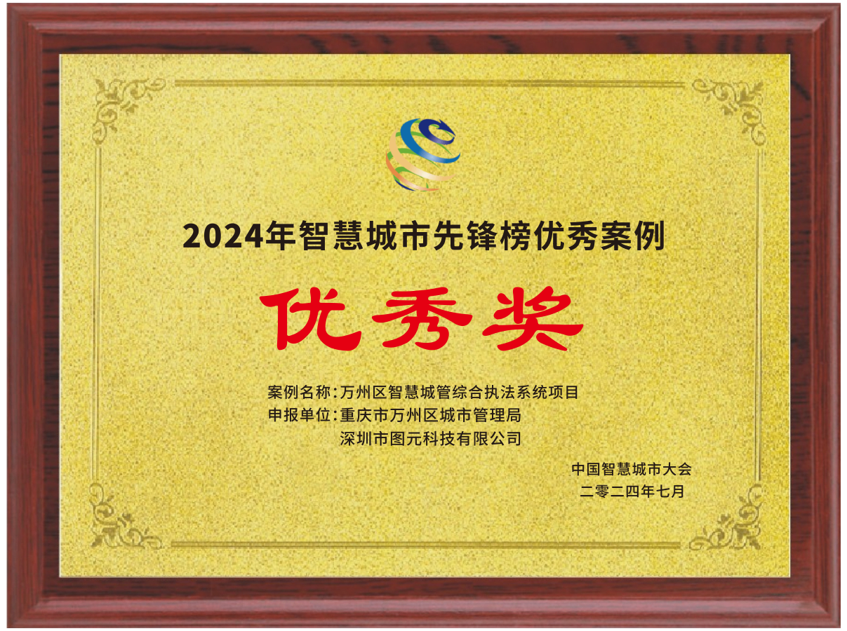 此外,图元科技凭借在城市管理领域近20年的经验,和客户一道打造了多个示范标杆案例,在2024度的中国智慧城市大会的优秀案例评选活动中获得了“智慧城市先锋榜优秀案例一等奖”等多个奖项。